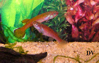 - - - - - La ponte se fait principalement sur le mop. Les oeufs acceptent une période d’ assèchement de 1 mois sur tourbe humide. Si les oeufs restent en eau le développement embryonnaire est d’ environ 15 jours mais peut se prolonger jusqu’ à 1 mois. Dès la naissance les alevins acceptent les micro- Si les adultes sont bien nourris on peut trouver des jeunes dans leur bac. - - Un petit aquarium de 15 litres suffit pour accueillir un couple ou un trio. Comme pour la plupart des killies le bac doit être bien couvert pour éviter toute évasion fatale. |