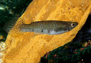 | - - - - - - dans un petit bac d’ environ 20 litres de volume net. Bien que le mâle ne montre aucune agressivité j’ ai placé plusieurs mops( de fond et flottants ) qui servent à la fois de refuges aux femelles et de support de ponte. L’ eau est moyennement douce et légèrement acide . Une légère filtration sur perlon maintient une eau sans particules en suspension. Les gros oeufs sont déposés indifféremment sur les différents mops, j’ en trouve même sur le dessus du flotteur. Je les récupère un à un pour une incubation séparée des adultes en les plaçant dans un petit récipient contenant la même eau que le bac de ponte. Régulièrement, principalement les premiers jours, il faut contrôler l’ état des oeufs afin d’ éliminer ceux qui blanchissent, ils ne sont pas fécondés et risquent de contaminer les oeufs voisins. Le temps d’ incubation est d’ environ 2 semaines . Dès la naissances les jeunes sont capables d’ absorber les nauplies d’ artémias. Rapidement il faut les habituer aux nourritures sèches. Croissance lente. - - un bac d’ ensemble suffisamment spacieux s’ il est peuplé de petites variétés qui demandent les mêmes caractéristiques de maintenance ( qualité de l’ eau, température...) en prenant la précaution de bien couvrir le bac car c’ est un excellent sauteur. |