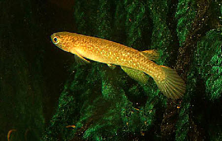 - - - - - - Ce bac est agencé de la façon suivante: - - Les oeufs, assez gros, sont déposés sur les différents mops avec une plus grande concentration dans la partie supérieure du mop flottant. On peut les récupérer et les placer dans un petit récipient contenant la même eau que le bac de ponte. Suivant la température de temps d’ incubation peut aller de deux à plus de trois semaines. Dès la naissance les alevins sont aptes à accepter les nauplies d’ artémias fraîchement écloses. Au moment où j’ écris ces quelques lignes je n’ ai pas obtenu de jeunes en reproduction naturelle. Croissance assez lente. Il est possible de garder les oeufs sur tourbe humide pendant deux semaines avant de mettre en eau. - - Comme beaucoup de Rivulus la femelle de cette variété porte l’ ocelle au départ de sa nageoire caudale. Attention, c’ est un excellent sauteur, le bac doit dont impérativement être très bien couvert. |